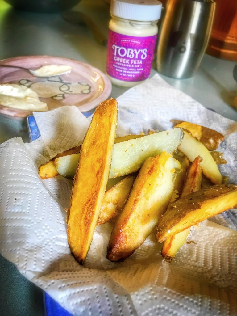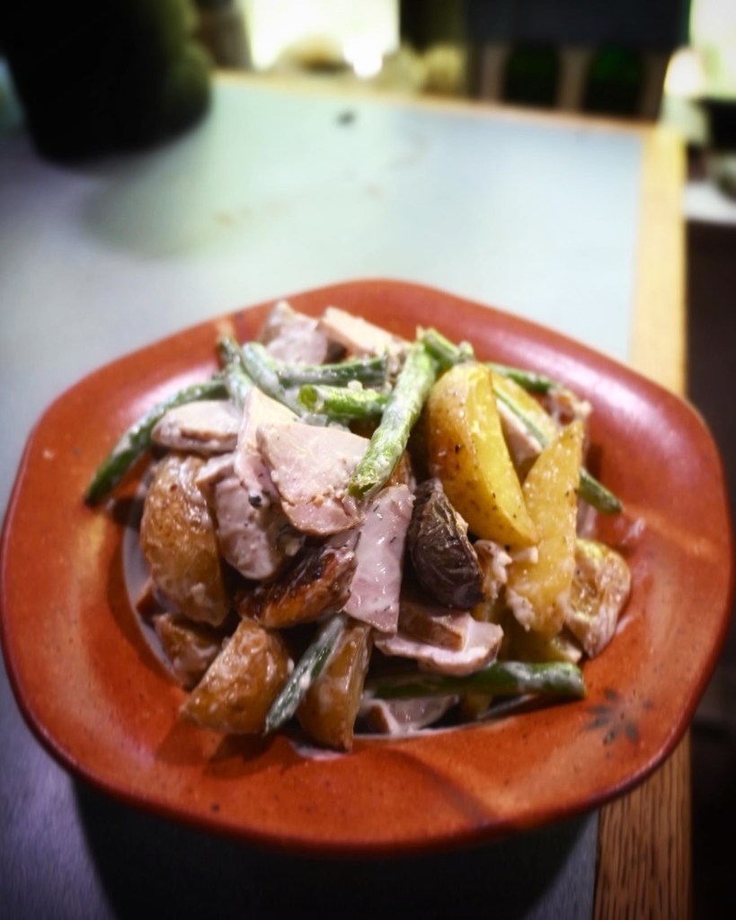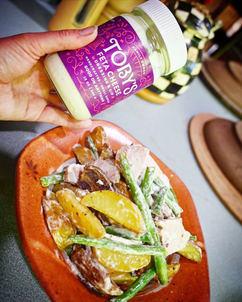 *Expert tip – don’t chill this potato salad. Enjoy roasted potatoes and green beans tossed in a Toby’s Salad Dressing and served with the sautéd protein of your choice.